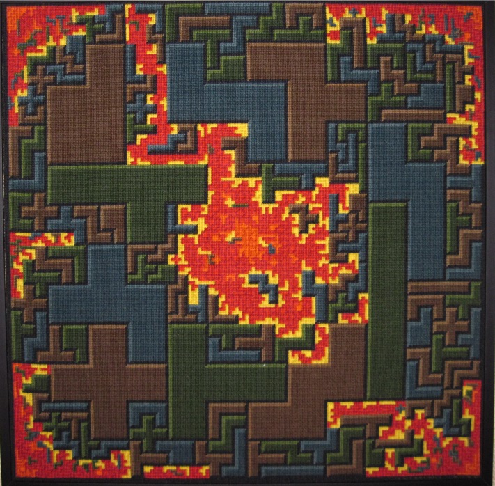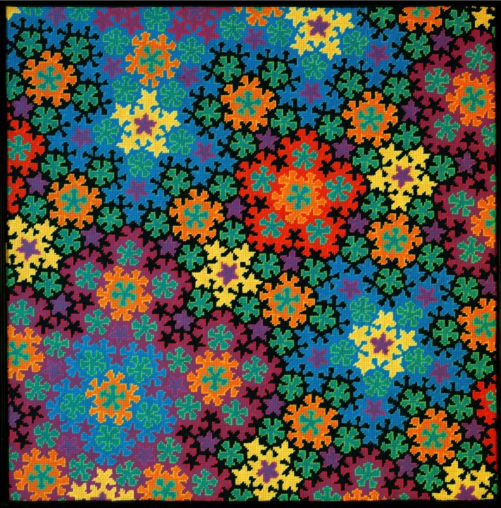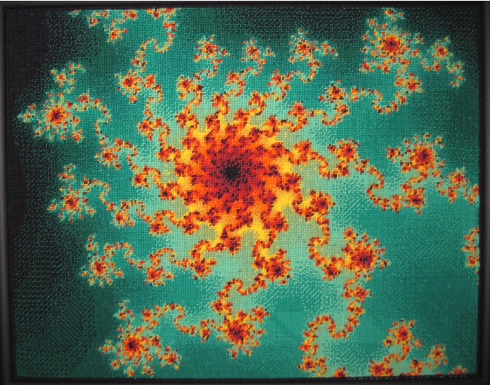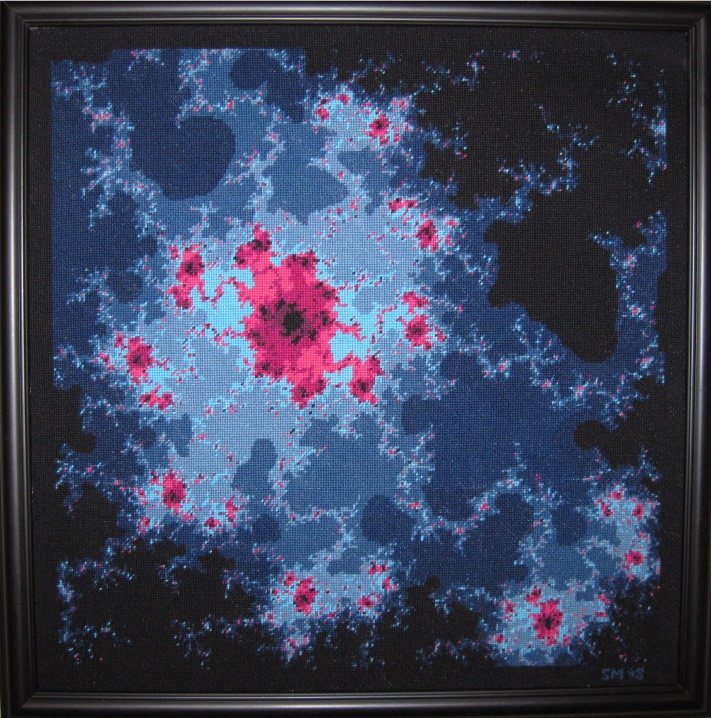 Fractals are the ultimate high resolution pictures. No matter how high of a resolution you use to look at them, there are always details that blur, and are left out. At first I thought this made them un-suitable for crude low resolution needlepoint designs. Then I thought, why not give it a try? I was surprised by the results.