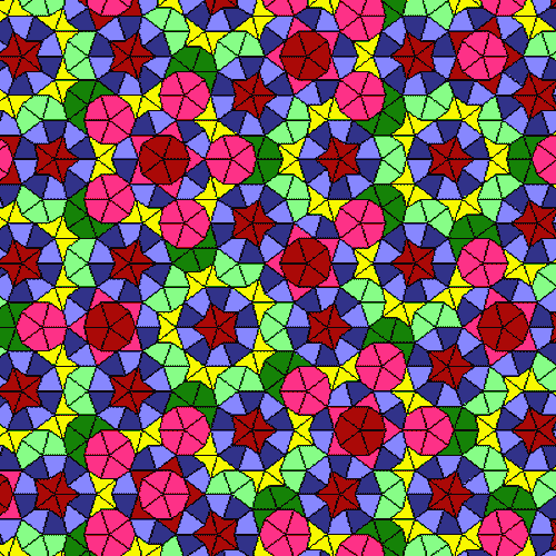 The Penrose tiling has fascinated me since I first saw it in Martin Gardner's January 1977 column in "Scientific American". This article describes a way found by Roger Penrose (an Oxford Professor) to tile a flat area using two simple shapes, but with no overall symmetry.